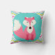 Kids who love foxes and bright, fun designs will love this cute fox throw pillow featuring a pink chevron stripe fox on an aqua circle with a chevron striped grey, white, green, aqua, and hot pink background. Perfect for her bedroom, the playroom, nursery, or recreation room, this fox pillow is sure to be a great addition!