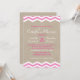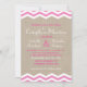 Bright pink and white chevrons on an illustrated burlap background accent this shower invitation. The coordinating wedding invitation and RSVP are available; however, if additional items are needed for your wedding just contact us at prettyfancyinvites@gmail.com with your request.