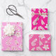 Pink Christmas- Candy Canes, Stars & Trees Pattern Wrapping Paper Sheet