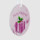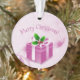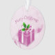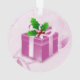 Add a whimsical touch to your Christmas tree with a Pink Christmas Gift Ornament. Ornament design features a vibrant pink Christmas gift adorned with holly berries and falling snowflakes against an elegant scroll and leaves background. Additional gift and holiday items available with this design as well.