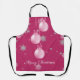 Celebrate the season in style with this Pink Christmas Ornaments Apron. Adorned with sparkling Christmas ornaments, festive ribbons and bows, and delicate white snowflakes, the design also features cheerful hanging baubles and a classic Merry Christmas greeting in elegant script. Perfect for adding charm to any winter theme gathering, this holiday design makes cooking, baking, or hosting extra merry. A thoughtful choice for Christmas kitchen gifts or as a cheerful seasonal accent in your own home.