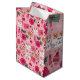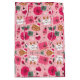 A playful pattern featuring cute animals and festive decorations on a pink background.