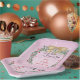 Colourful Christmas-themed paper plates for your holiday entertaining feature a stack of pink champagne glasses with a Christmas wreath around it and a gold bow at the top. Wording reads: "Tis the season to sparkle and shine" and behind it all is a background consisting of a dusty pink with snowflakes and a pale silhouette of a group of women celebrating a toast! Available in different shapes and sizes - so perfect for appetizers too!