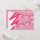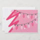 A Christmas party invitation featuring a pink background with strings of old fashioned pink Christmas lights across top and bottom. Personalise centre text with details of your event. Opposite side features Christmas tree illustration.