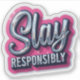 Serve glam vibes with this Pink Slay Responsibly Aesthetic sticker featuring metallic script and bold pink background. Perfect for laptops, phone cases, water bottles, or journals. Printed on premium glossy vinyl with vibrant colours that last. A fun and cheeky gift for baddies, besties, and anyone who loves a little sparkle with their hustle. Slay away... but do it responsibly.