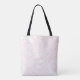 This tote bag features an oversized line art drawing of chrysanthemums in pink and a personalized name. Original art from Dogwood & Thistle.