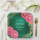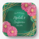 Pink Chrysanthemums with Gold Geometric Wedding Paper Plate