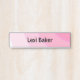 Simple swirl pattern, half circles cascade across the name plate in a fading ombre colouration - ranging from Pink to white, separated by a pinky purple line, Use this design to add a logo or name. Perfect for a teen or tween bedroom, for yours or a loved ones home office, for your work space, or for any occasion!