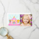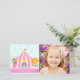Bright blue, pink, lilac and yellow are the main colours of this sweet Circus themed birthday party invitation. It features a cute lion, a little monkey and a top circus tent. Personalise it with your message and little girl's name. Some elements by Grafos.
