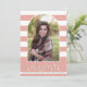 Modern pink Class of 2023 arch with photo graduation announcement. It features the text "GRADUATE", a photo in an arch and stripes in pink and white.