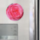 The original photograph by MaeFlowers on this Magnet is a closeup of a bright pink climbing rose, fresh from the garden. The rose petals, in light and shadow, are many shades of pink, from pale to deep. The rose faces us directly, showing the tips of the petals as they curve around to the centre.