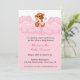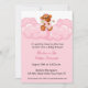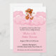 Baby girl shower invitation with cute baby monkey holding pink bottle sitting on fluffy pink clouds. Invitations are easy to customise and come complete with envelopes and your choice of paper.