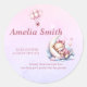 Pink Clouds Stars Teddy Bear on Moon Baby Shower Classic Round Sticker