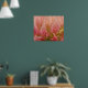 This artistic poster features an impressionistic abstract view of the centre of a pink clover blossom.