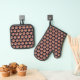 Safely handle baking trays, cookie sheets and muffin tins from the oven with this pot holder set with black trim that features the photo image of a pink Collarette Dahlia flower printed in a repeating pattern on a black background. A fun, floral design! Select from square pot holder style or oven mitt style, or order a set of both. Image printed on one side only.