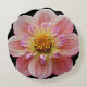 Pink Collarette Dahlia on Black Floral Round Cushion