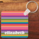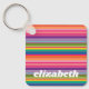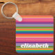 Pink & Colourful Striped Pattern with Funky Name Key Ring