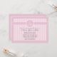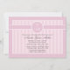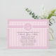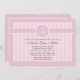 A beautiful pink and white, striped invitation with a round decal featuring a cross and the child's initials. (FP)