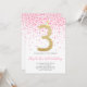 Pink Confetti Party Gold Number Girl 3rd Birthday Invitation