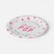 Confetti baby shower "Ready to Pop" paper plate featuring confetti in shades of pink perfect for a girls baby shower.