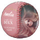 Elegant Pink Congratulations Grad Graduation 2 Photo Softball. This elegant personalised graduation softball with golden ornament is a perfect gift for a graduate. Add 2 photos, the graduate`s name, school name and graduation year. You can change any text on the softball.