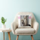 Pink Congratulations Graduate Graduation Photo Pillow with a graduate name and a photo. Modern and simple design with graduation cap, pink stripe, text Congratulations, a name and a photo of the graduate - personalise with your name and add your favourite photo.