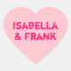 Customisable pink conversation heart shaped sticker. You can increase or decrease the text size to fit a couple's names and create a personalised Valentine's Day message.