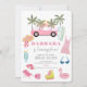 Pink Convertible Palm Tree Girl Birthday Invitation