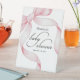 Welcome guests in style with this lovely baby shower pedestal sign, featuring a soft pink watercolor coquette bow and graceful script calligraphy. Designed to add a touch of sophistication and charm, this sign is perfect for setting the tone for a dreamy, elegant celebration. Personalise it with the mum-to-be’s name and shower date for a truly special touch.