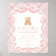 Pink Coquette Bow Bear Plaid Party Favors Sign