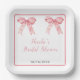 Pretty bridal shower plate featuring a pink coquette bow ribbon. The words can be changed to suit your own details or requirements