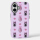 This pretty pink iPhone case, featuring a delicate coquette cat pattern, is perfect for cat lovers.