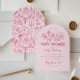 A "Pink Coquette Modern Hand Drawn Baby Shower" invitation design typically blends whimsical, playful elements with a contemporary aesthetic. The 5x7 size is a standard and popular choice, providing enough space for all the important details while maintaining an elegant, compact format, however other formats are available.