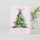 Pink Coquette Ornate Rococo Bow Christmas tree Holiday Card
