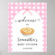 This adorable baby shower welcome sign features a charming apple pie illustration centered within a soft pink gingham background, accented by delicate white flowers and a sweet coquette-style ribbon bow. Designed to coordinate with a Cutie Pie–themed baby shower, elegant script typography warmly welcomes guests while highlighting the mom-to-be’s name for a cozy and inviting first impression. Perfect for entryway displays, dessert tables, or photo backdrops, this sign complements pie-themed and coquette-style celebrations beautifully. The gentle pastel color palette offers a timeless, versatile look suitable for any season, and the customizable text allows you to personalize it effortlessly for your special event.
