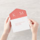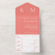 Pink Coral and White-Monogram-Modern-Wedding- All In One Invitation