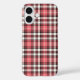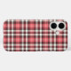 Phone case with a Plaidwerx original plaid pattern in pink coral, black, and white.