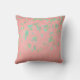 Pink Coral Gold Leafs Mint Green Pastel Cushion