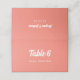 Pink Coral Minimalistic Script Wedding Place Card. Customise with table number and guest's name on the front, and bride and groom names and wedding date on the back. Click on "personalise this template," then "edit using design tool" to change colours, or to add/remove text. If you need help making any changes, please message the designer.