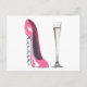 Pink Corkscrew Stiletto Shoe and Champagne Flute Postcard
