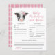Cute cow theme baby shower baby predictions and advice card featuring illustrations of baby cow with a pink flower. Perfect game to play during the shower and will definitely be a great keepsake! The card asks guests to predict what the baby would look like.