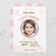 First rodeo pink cowgirl first birthday party invitation for girl. Cute wild west themed invitation for girls first birthday party. Cowboy boots and hat with desert scene, rope photo template and checkerboard design on the reverse, simple with a touch of vintage pink and brown colors. Customize your first rodeo invite. Digital download is also available for your convenience. Check out the First Rodeo Pink Cowgirl 1st Birthday Baby Girl Collection in The Gathering Designs store to find other matching items for a baby girl first rodeo party.
