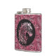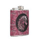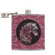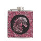 Pink cowgirl floral tooled leather horse head hip flask