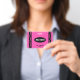 Hot pink crayon elementary school teacher hall pass badge for students. Personalise it by adding your name, classroom number and school name.