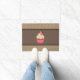 Pink Cream Brown Stripes Strawberry Cupcake Doormat