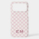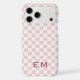 This blush and cream checker iPhone case features a deep rosewood monogram for a look that feels polished and timeless. The subtle grid pattern adds modern texture, while the rich serif initials create beautiful contrast against the airy background. Inspired by quiet luxury and classic personalization, this case pairs perfectly with soft neutrals, bridal moments, or everyday elevated style.