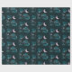 Pink Crescent Moon Stars Celestial Blue Halloween Wrapping Paper