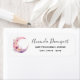 Address labels with a lovely illustration featuring a soft pink and purple crescent moon. Pretty pink and yellow wildflowers adorn this celestial body.