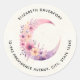 Pink Crescent Moon with Pretty Flowers Address Classic Round Sticker
