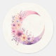Pink Crescent Moon with Pretty Flowers Classic Round Sticker